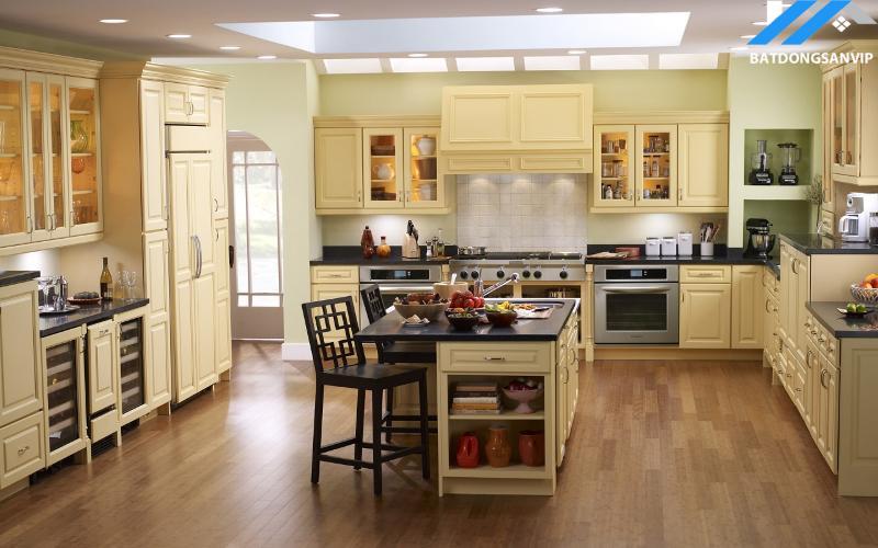 Bên cạnh đó, chủ nhân cũng nên sắp xếp, bố trí các dụng cụ nhà bếp và bàn ăn một cách tinh tế. Nên kết hợp hài hòa nội thất với màu tường, trần, sàn tạo cảm giác hoàn hảo cho không gian nấu nướng.