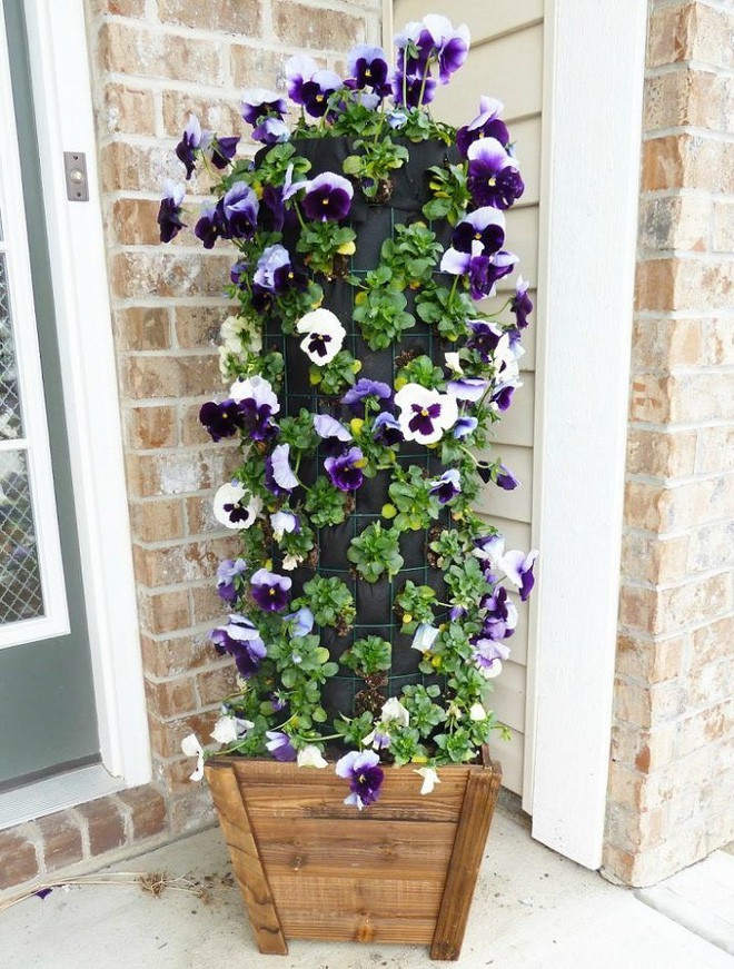 Nếu không gian sân vườn nhà bạn bị hạn chế, hãy dựng một chiếc cột hoa có phần đế bằng gỗ, cột trụ làm bằng xốp và sử dụng lưới bao bên ngoài tạo giàn leo cho cây. Việc cuối cùng là trồng một vài cây hoa leo vào đó và chăm bón thường xuyên để chúng nhanh nở hoa.