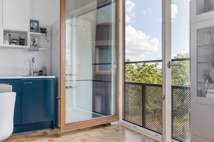 Nhằm mang ánh sáng tự nhiên vào khu vực nấu ăn, chủ nhà cũng mở thêm một hệ cửa kính