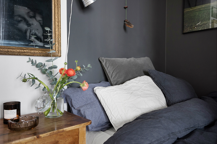 Với nội thất tối màu cùng bộ chăn ga có nguồn gốc tự nhiên, phòng ngủ nhỏ xinh này sẽ luôn mang đến sự