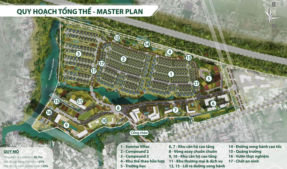 Không gian xanh biếc của mặt hồ Cầu Vồng sẽ giúp những buổi giao lưu của cộng đồng thêm thi vị. Dòng chảy của hồ nối liền với nhánh sông Đồng Môn góp phần lan toả nguồn năng lượng tích cực và tràn đầy sức sống.