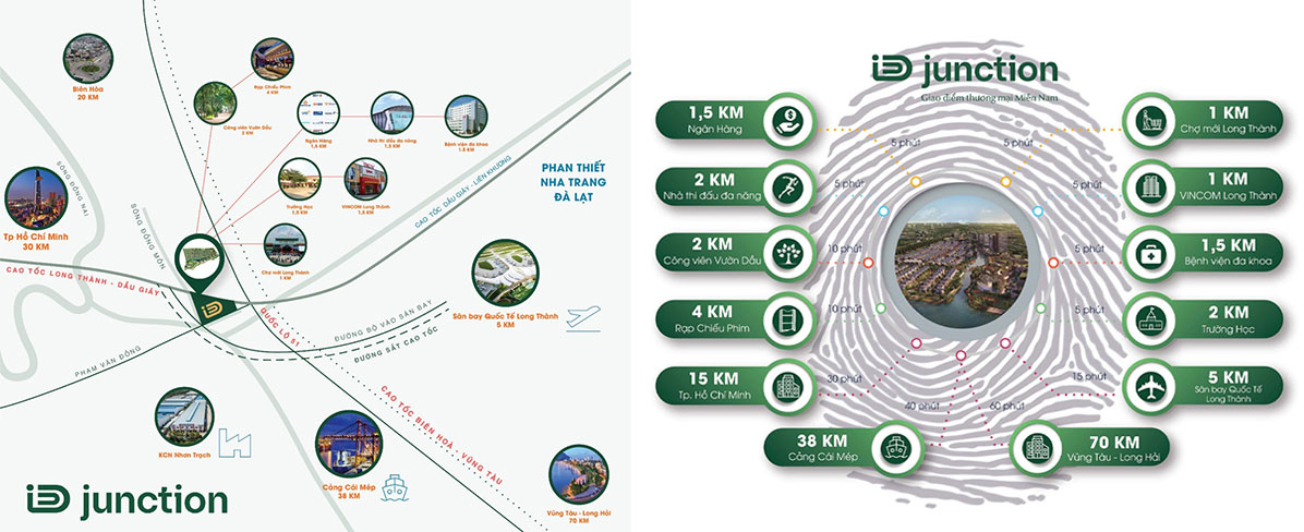ID Juntion nằm trong khu vực "Tam giác vàng của logistics" tương lai của miền Nam, hình thành bởi Cảng hàng không Quốc tế Long Thành và nút giao cao tốc TPHCM - Long Thành và Quốc Lộ 51, Cảng Cái Mép - Thị Vải đang là vị trí kết nối liên vùng, thông thương Quốc tế thuận lợi nhất mà chưa có dự án nào toạ lạc tại trung tâm Long Thành có được. Là khu đô thị giao thoa về vị trí, về kinh tế - xã hội. ID Juntion sẽ trở thành giao điểm thương mại Miền Nam, là miền đất tương lai cho công dân toàn cầu.