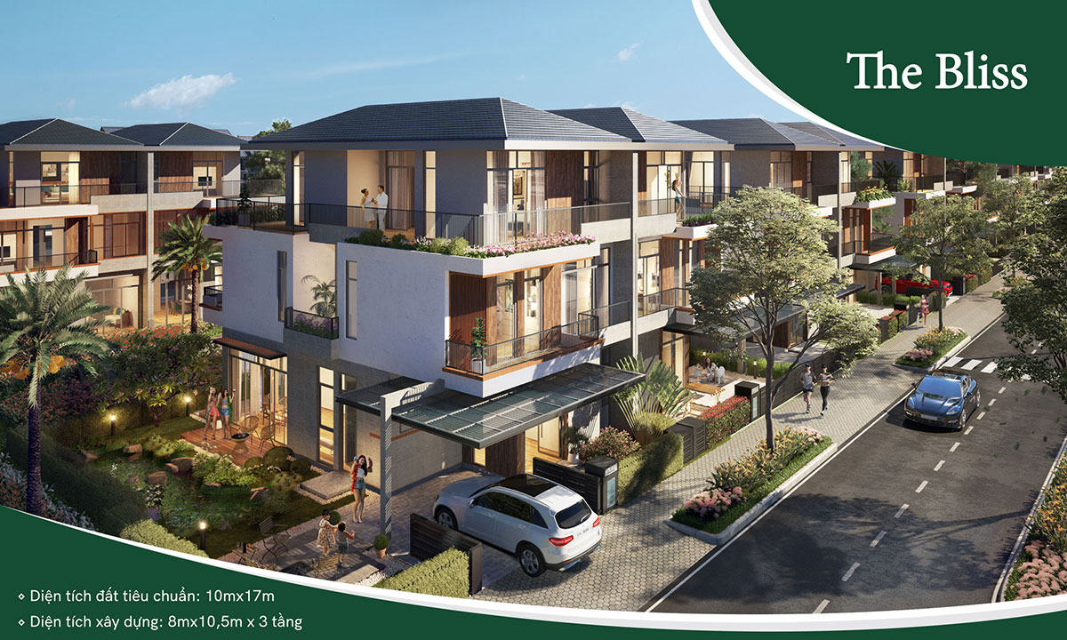 The Bliss có mặt sau hướng vườn kèm lối riêng thăm vườn, diện tích đất tiêu chuẩn 10m x 17m, kích thước xây dựng 8m x 10,5m. Thiết kế theo không gian biệt thự với mái cổ điển và hàng hiên đón gió.