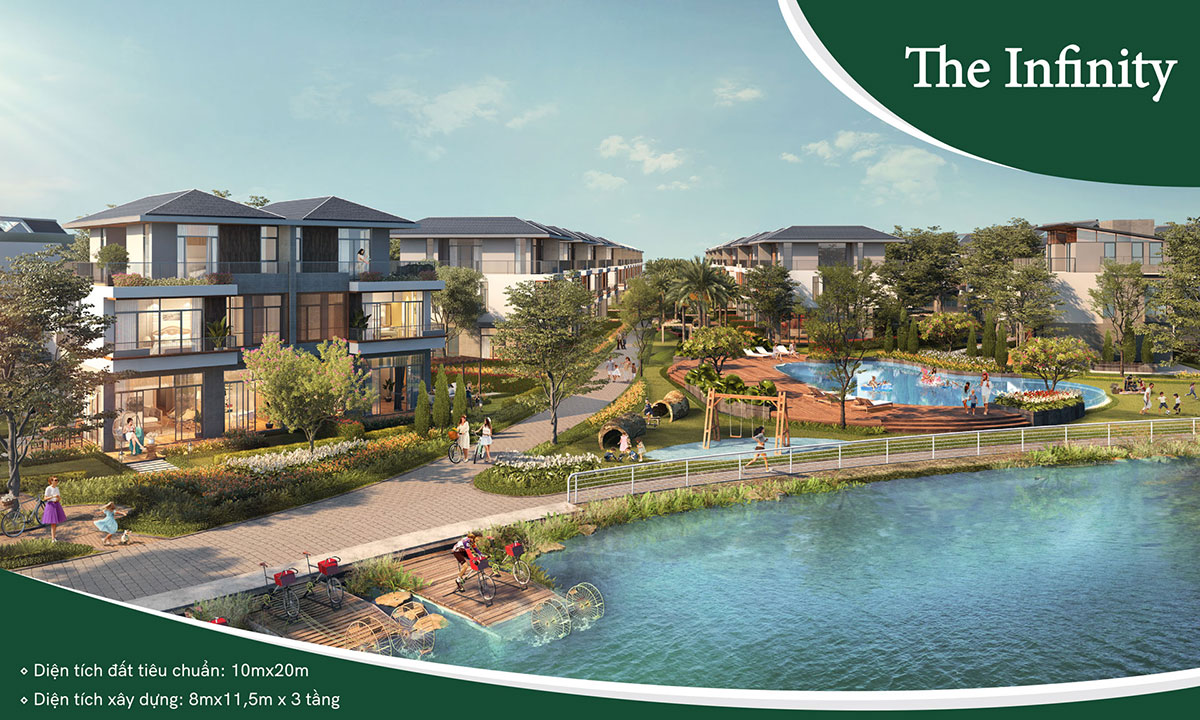 The Infinity như tên gọi của mình, Infinity chào đón chủ nhân bằng tầm nhìn không giới hạn, trải rộng đến mặt hồ trung tâm và công viên tiện ích. Diện tích đất tiêu chuẩn 10m x 20m, kích thước xây dựng 8m x 11,5m.