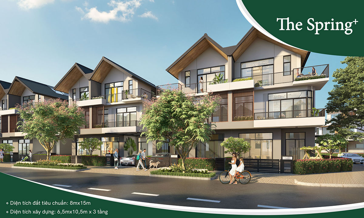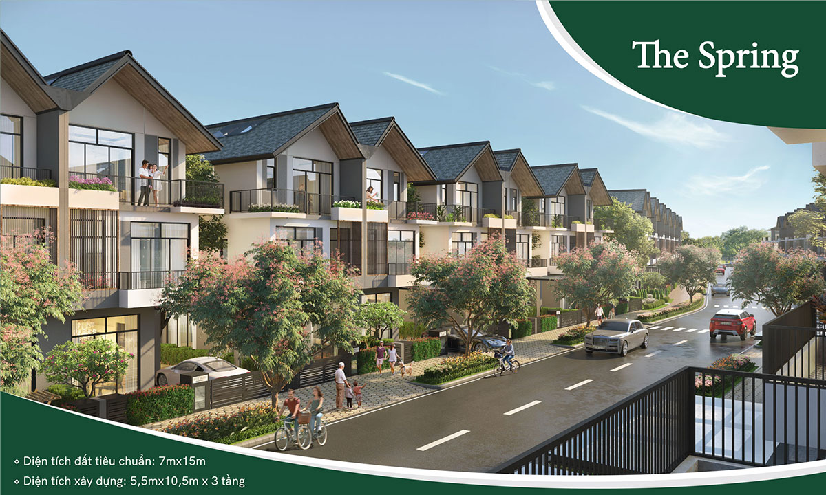 The Spring là dòng sản phẩm chiếm đa số trong dự án, với diện tích đất tiêu chuẩn là 7m x 15m, kích thước xây dựng 5,5m x 10,5m phù hợp với tài chính của các gia đình trẻ, năng động và thành đạt, các không gian sống được thiết kế và phân chia một cách thông minh, hợp lý.