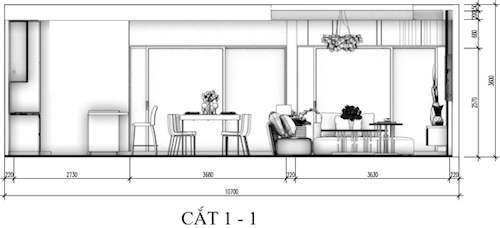 căn phòng, đồng thời tạo được sự gắn kết với không gian bếp