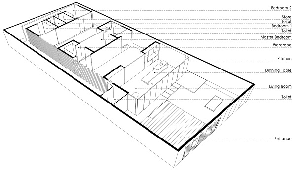 Nhen nhóm từ ý tưởng về một không gian trong nhà có con đường lưu thông xanh mát, mọi ngõ ngách đều thông thoáng, các kiến trúc sư đã tạo nên một ngôi nhà với thiết kế hộc kéo độc đáo.